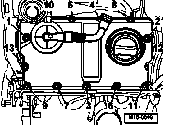 - Tighten cylinder head cover hand tight in sequence 1 ... 13-.