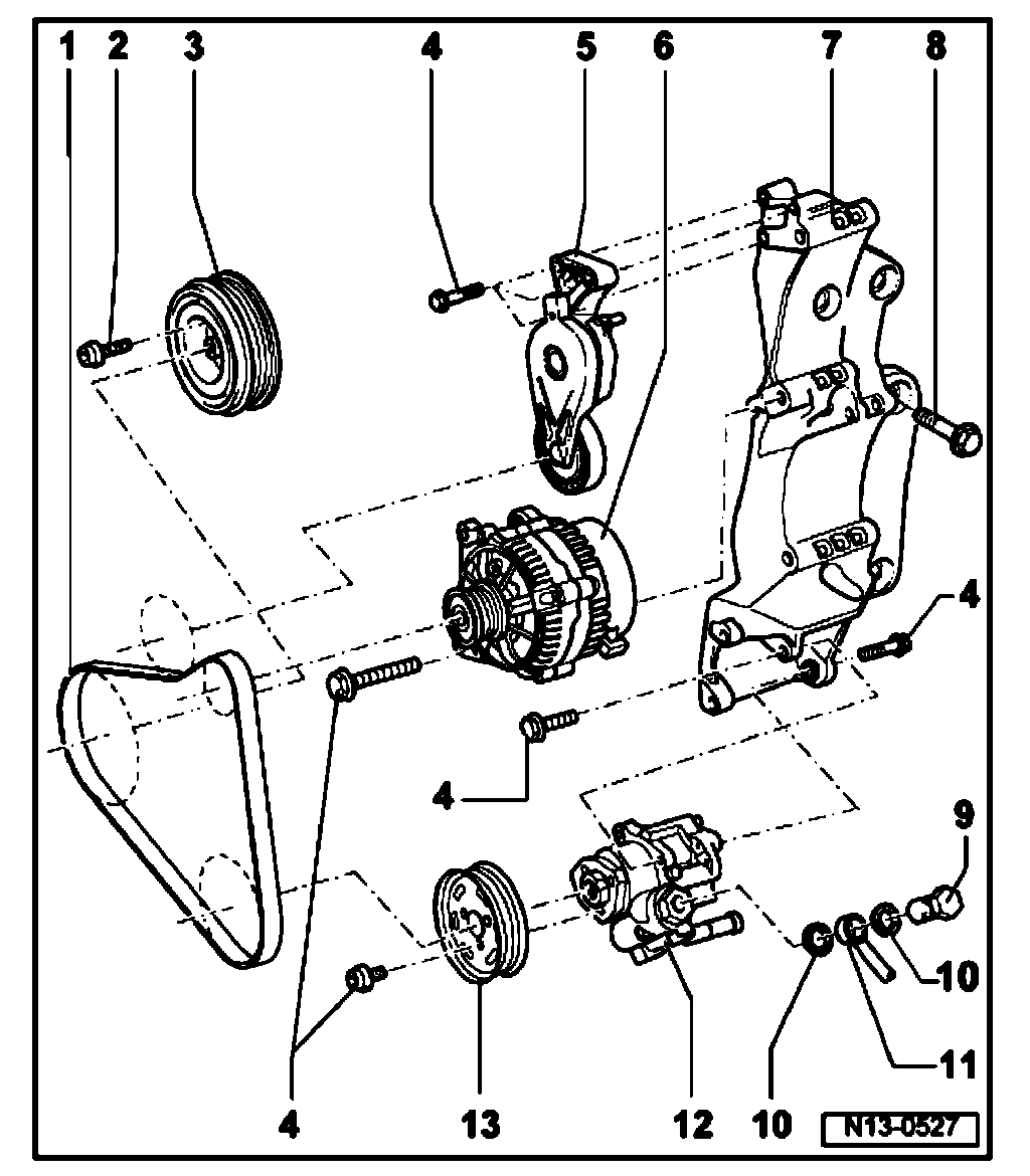 ^ For Generator, power steering pump and air conditioning compressor