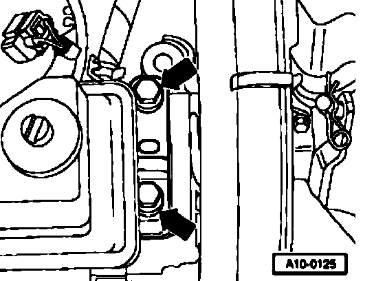 - Lift engine and transmission lightly using engine/transmission jack V.A.G1 383A.