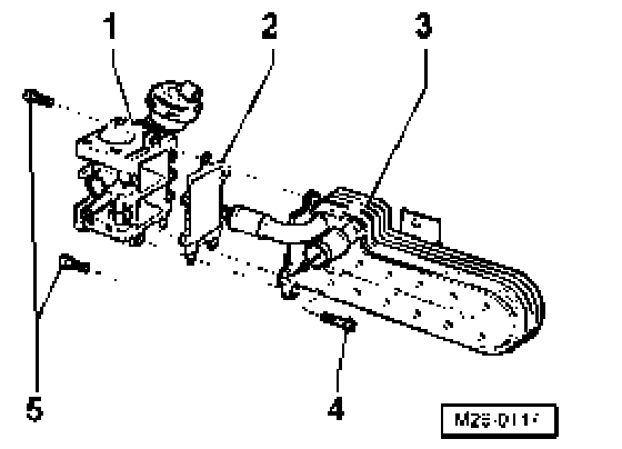 - Assemble bypass flap - 1 - with seal - 2 - and two bolts - 5 with EGR cooler - 3 - and tighten by hand.