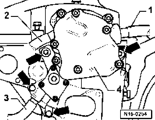 - Connect supply hose - 2 - (white marking) to supply connection of tandem pump and vacuum hose - 1 - from brake servo to tandem pump - 4 -.