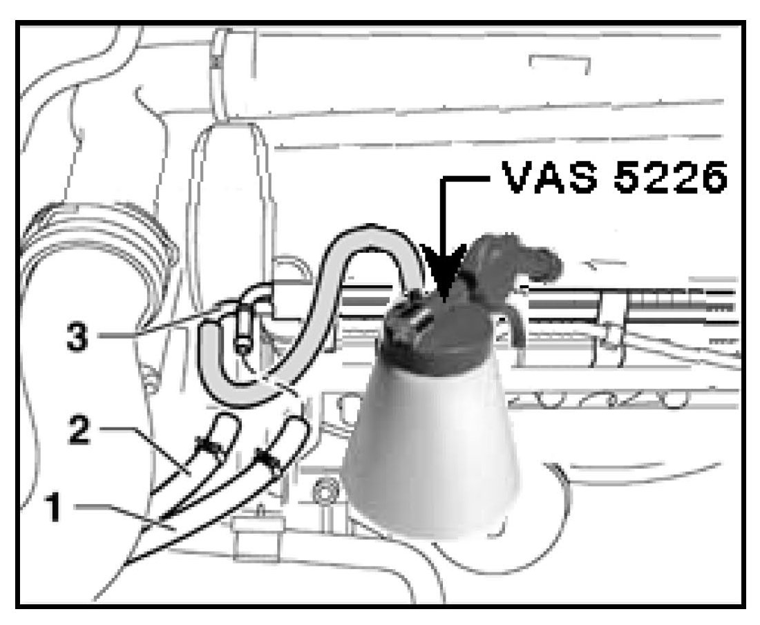 - Connect suction pump VAS 5226 to fuel return pipe -3-