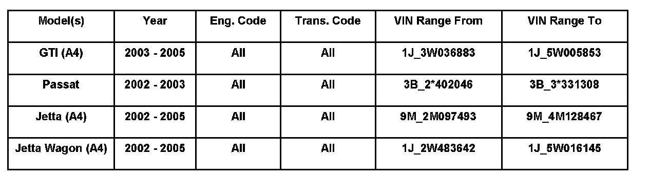 Golf/GTI: 1J_3_036883 to 1J_5_005853