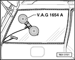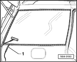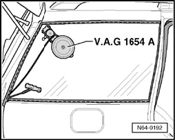 - Push cutting cord through adhesive sealant into vehicle interior using awl (from V.A.G1474).