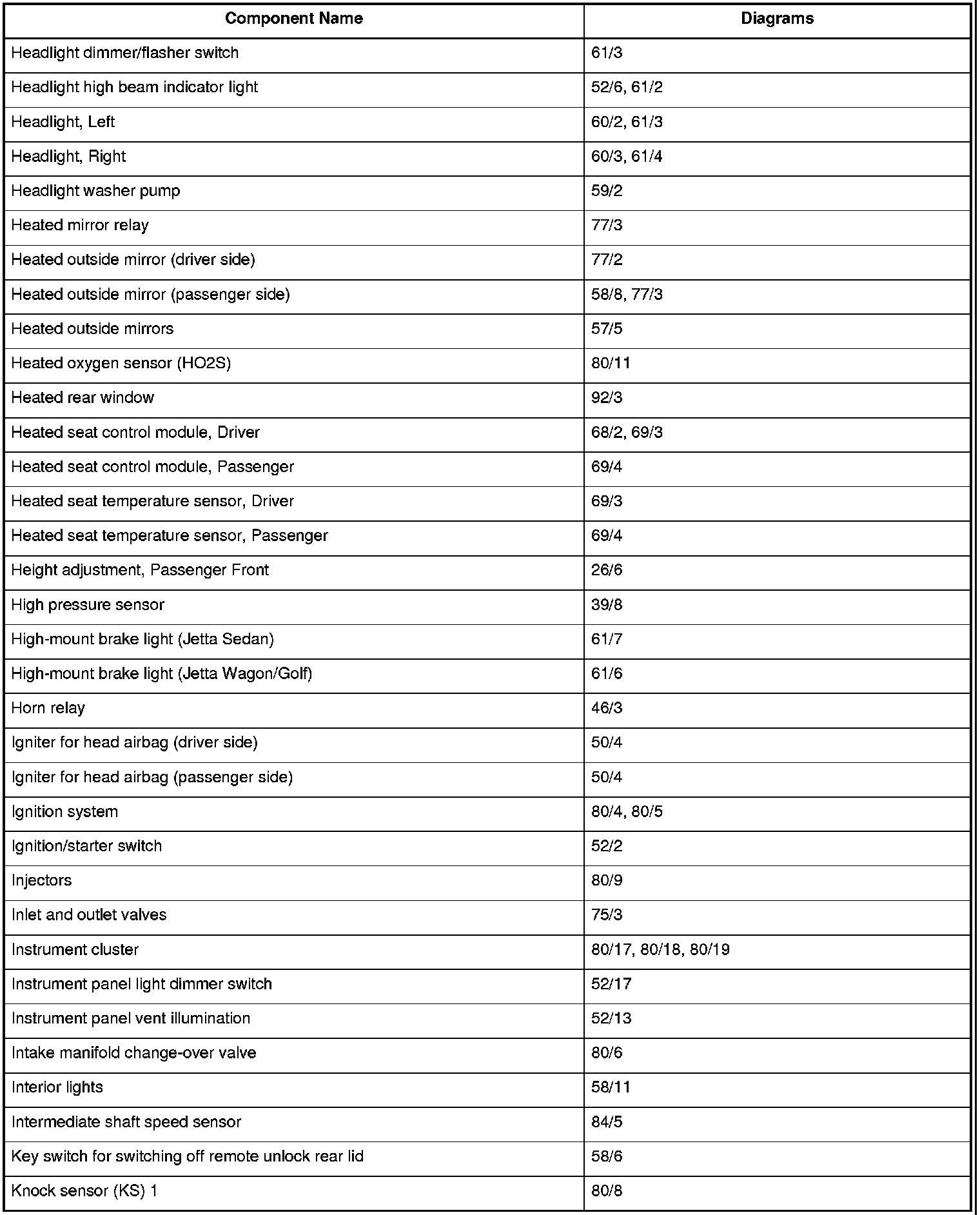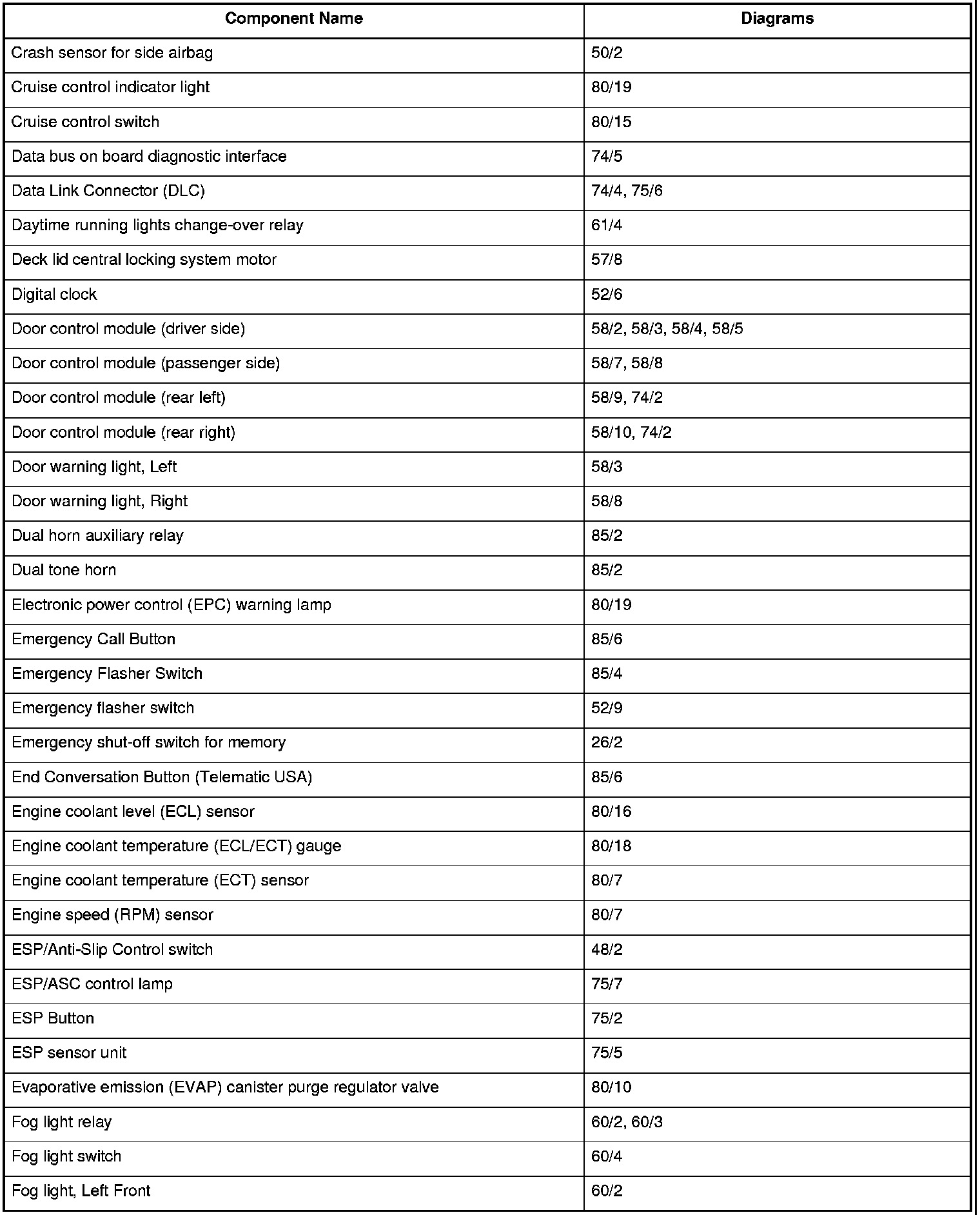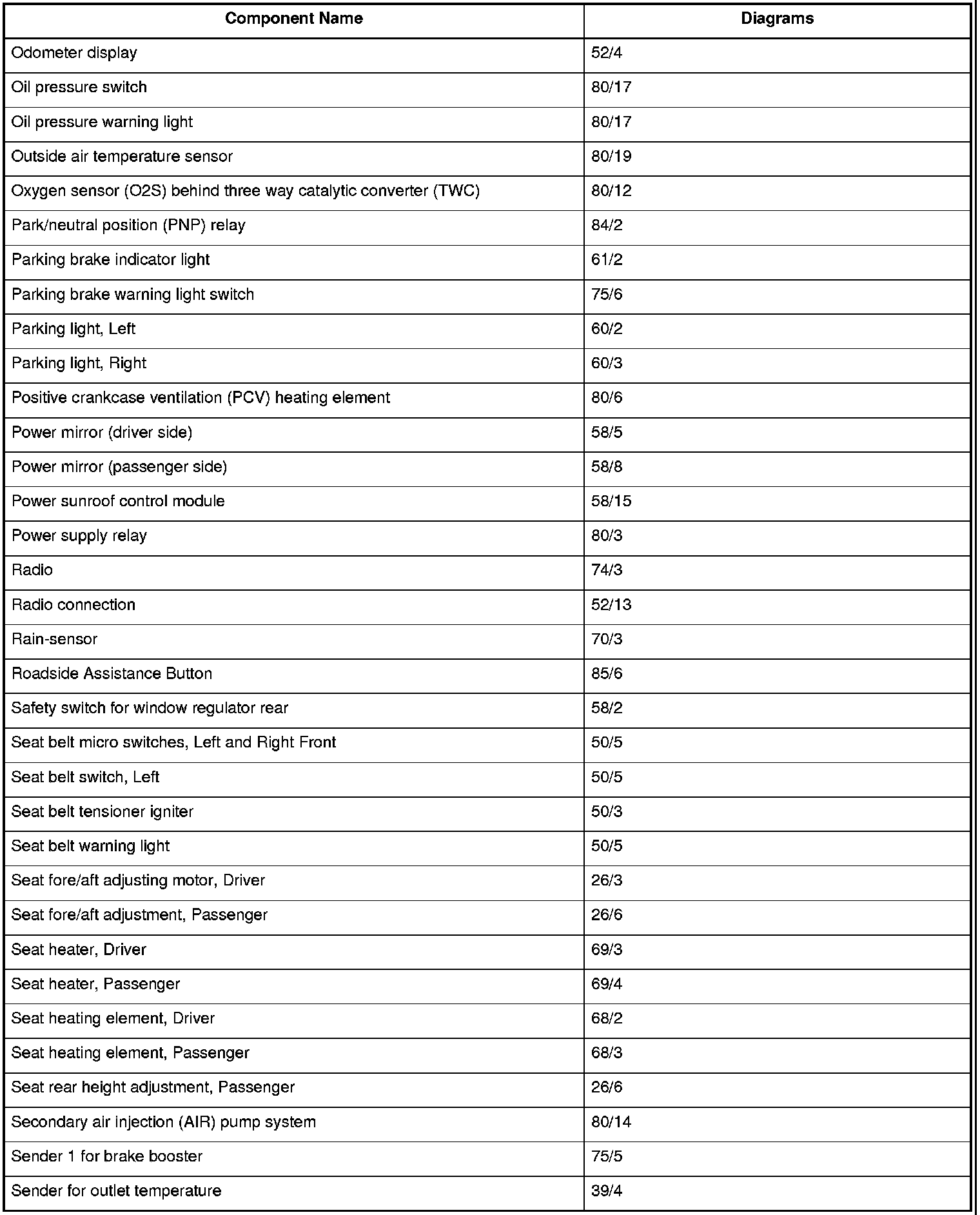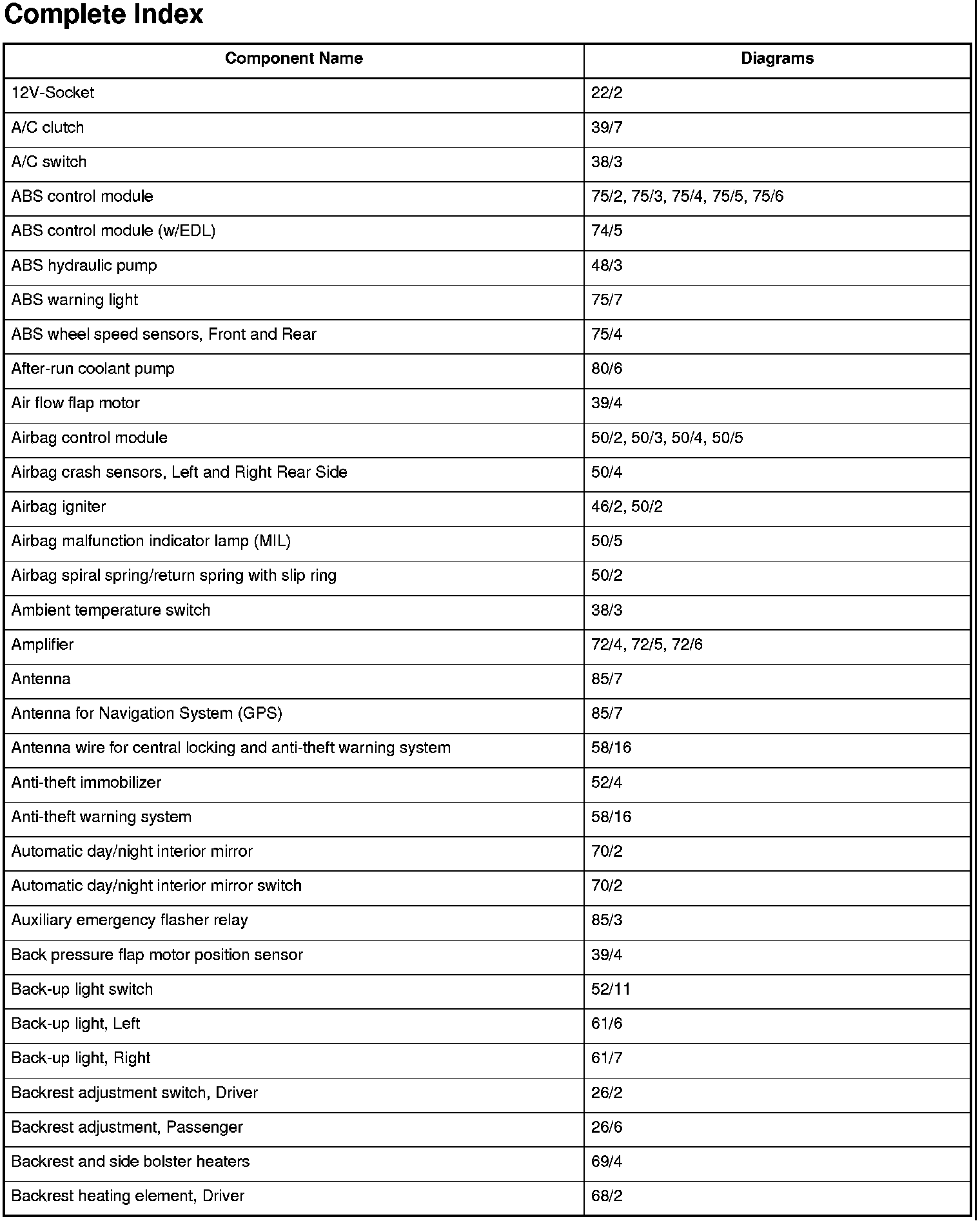 Master Diagram Index