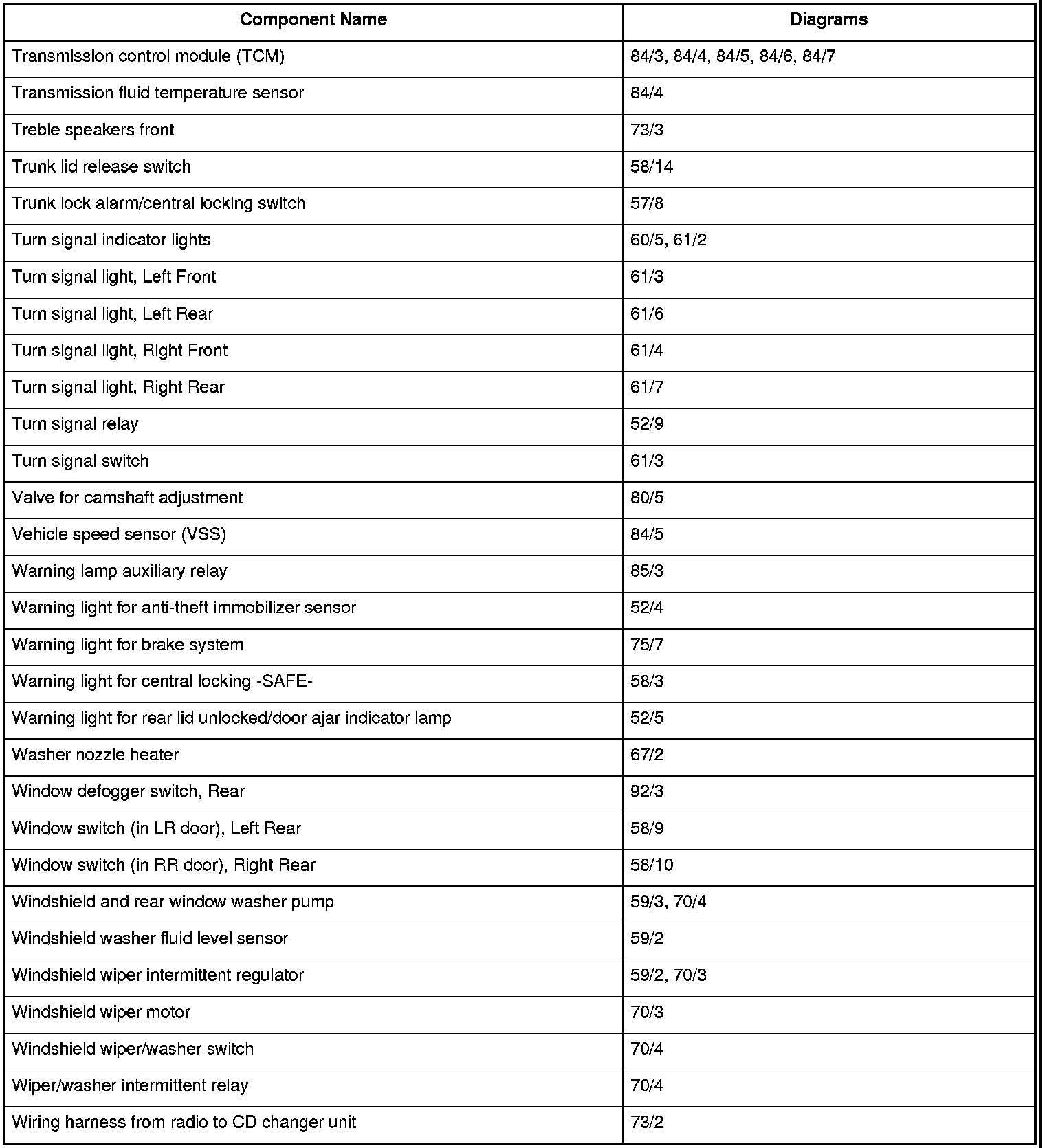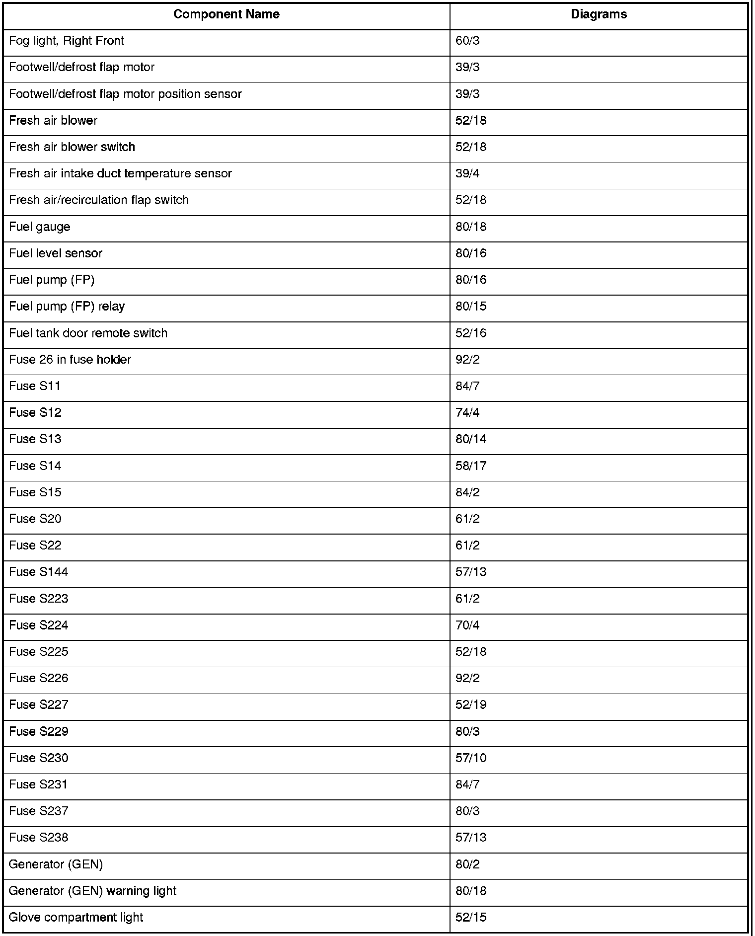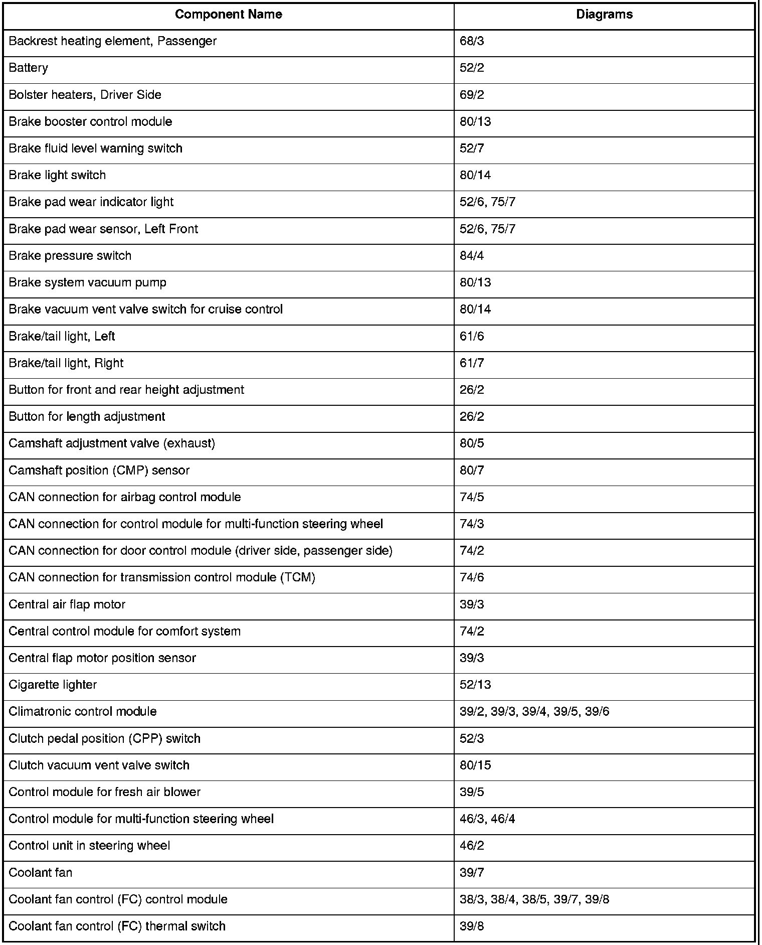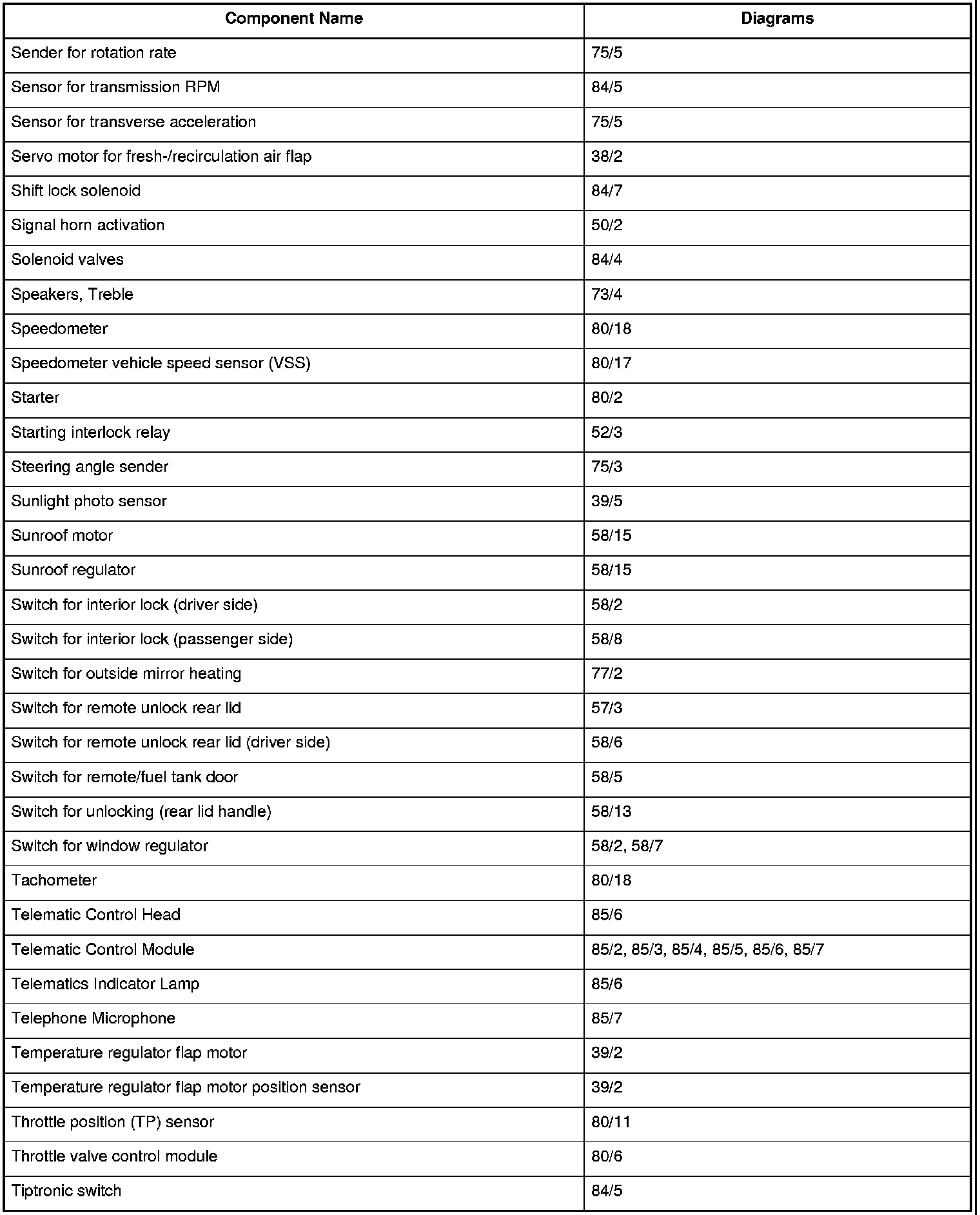 Master Diagram Index