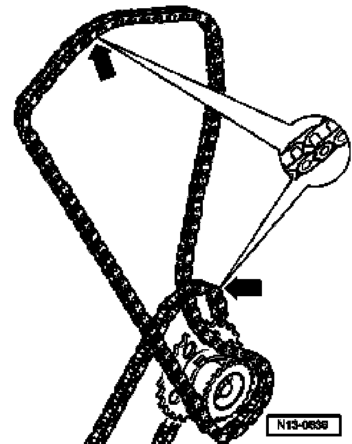 ^ Before installation release the locking device in the chain tensioner with a small screwdriver and press the tensioning plate against the chain tensioner