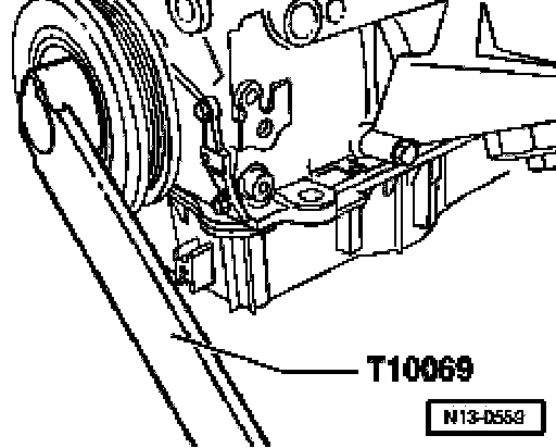 ^ Use counter support T10069 to loosen and tighten, Refer to Fig 1