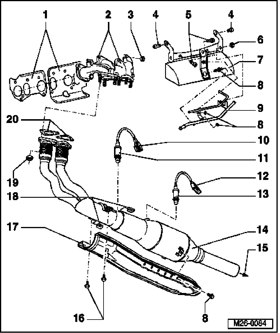 14 Front exhaust pipe with Three Way Catalytic Converter (TWC)