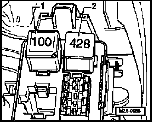 Fig. 1 Relay position assignment in protective housing (engine compartment, left)