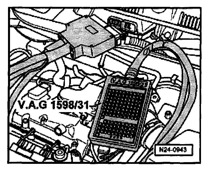 - Connect VAG 1598/31 test box to control module wiring harness. The Motronic Engine Control Module (ECM) -J220- remains disconnected.