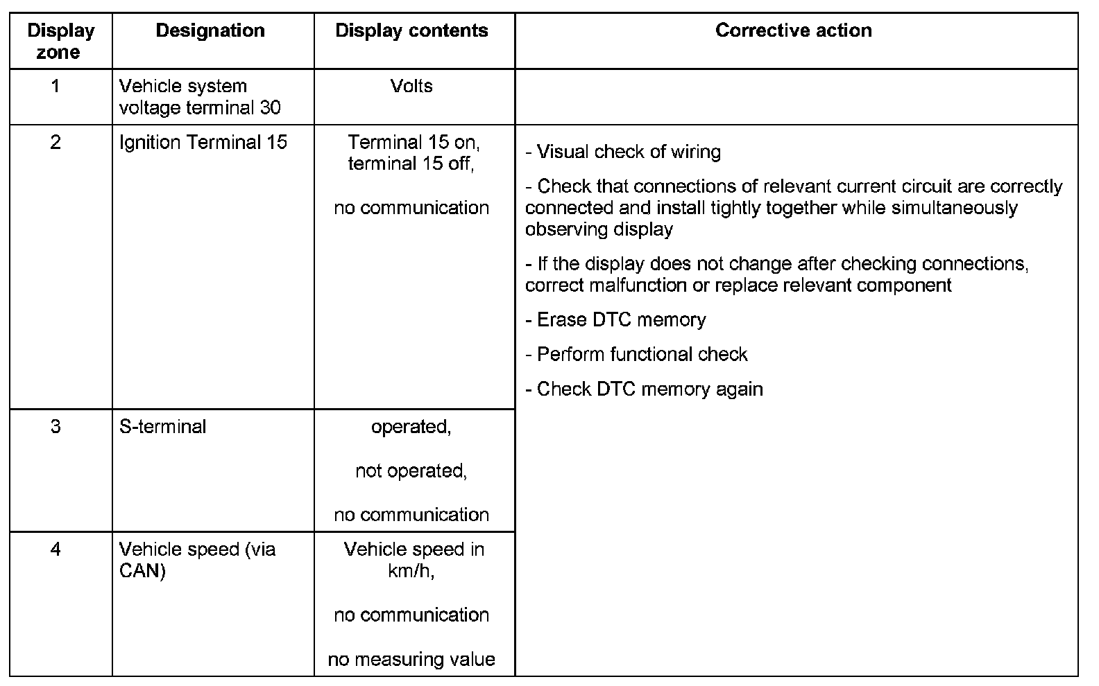 Display Zone 1 - 4: