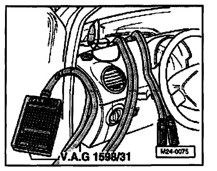 - Connect VAG 1598/31 test box to control module wiring harness. Motronic Engine Control Module (ECM) -J220- is not connected by this action.