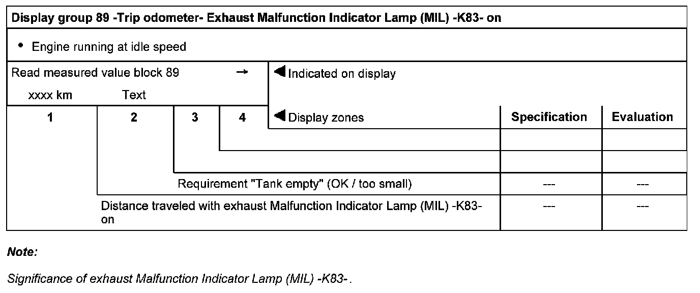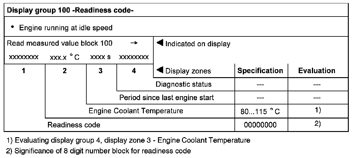 Measuring Value Block, Evaluating Display Groups 86...89, 100 (Readiness Code)
