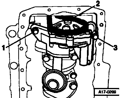 ^ Remove bolts -1- and -3- and remove oil pump.