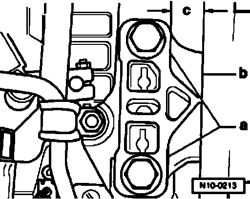 Both bolt heads -1- must be in flush with edge -c-.