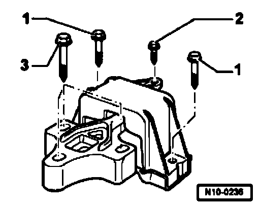 3. Pendulum support to transmission [1] 40 Nm plus 45° (1/8 turn)