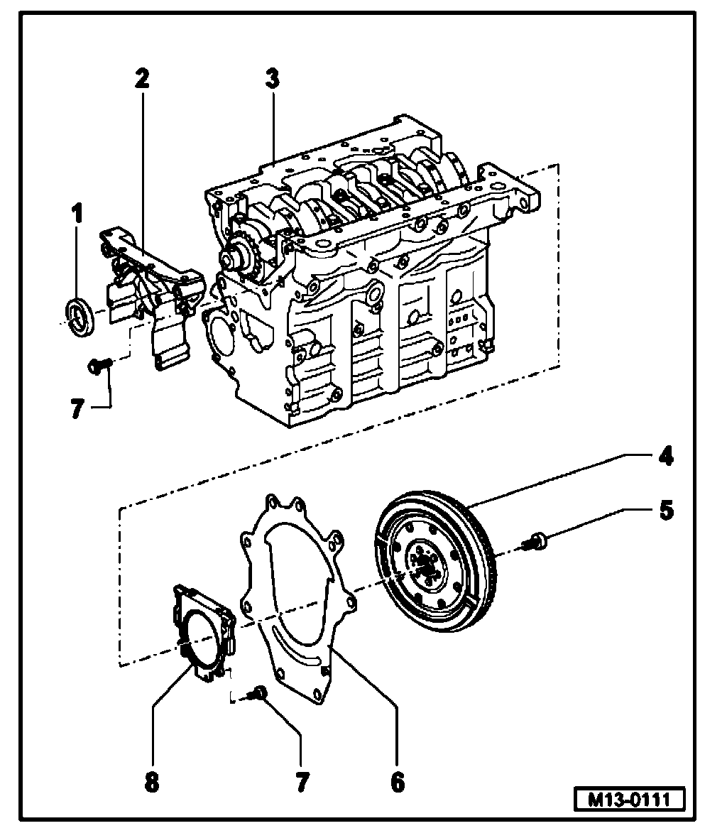 ^ Remove protective sleeve first after sliding sealing flange onto crankshaft journal