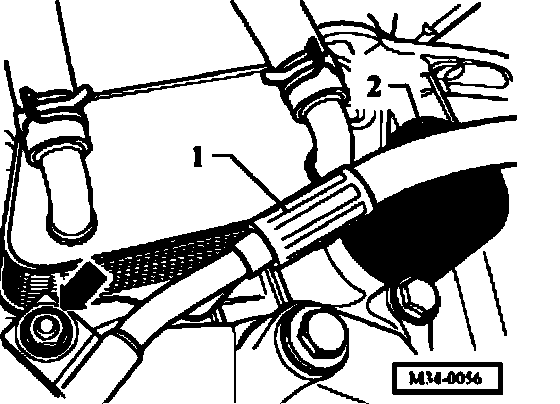- Unscrew nut (arrow) and place hydraulic line -1- to side.