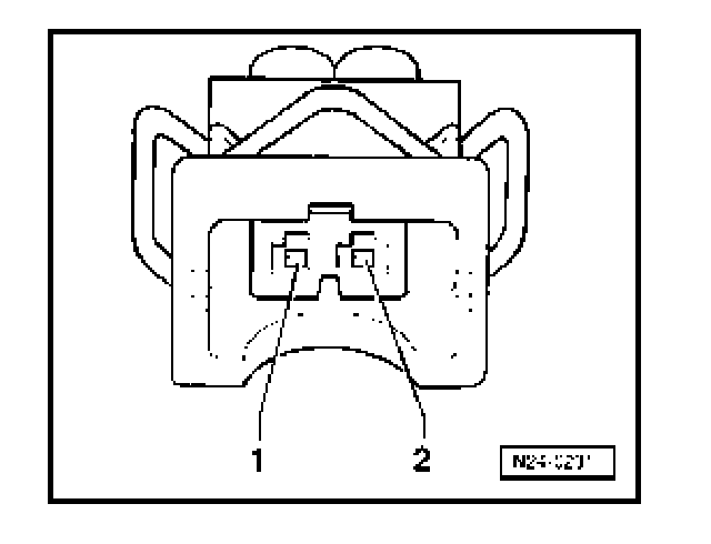 - Set multimeter for voltage measurement and connect it to terminals 1 + 2 at connector disconnected from change-over valve for intake manifold flap.