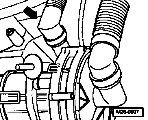^ Remove pressure hose (arrow) from secondary air injection pump motor.