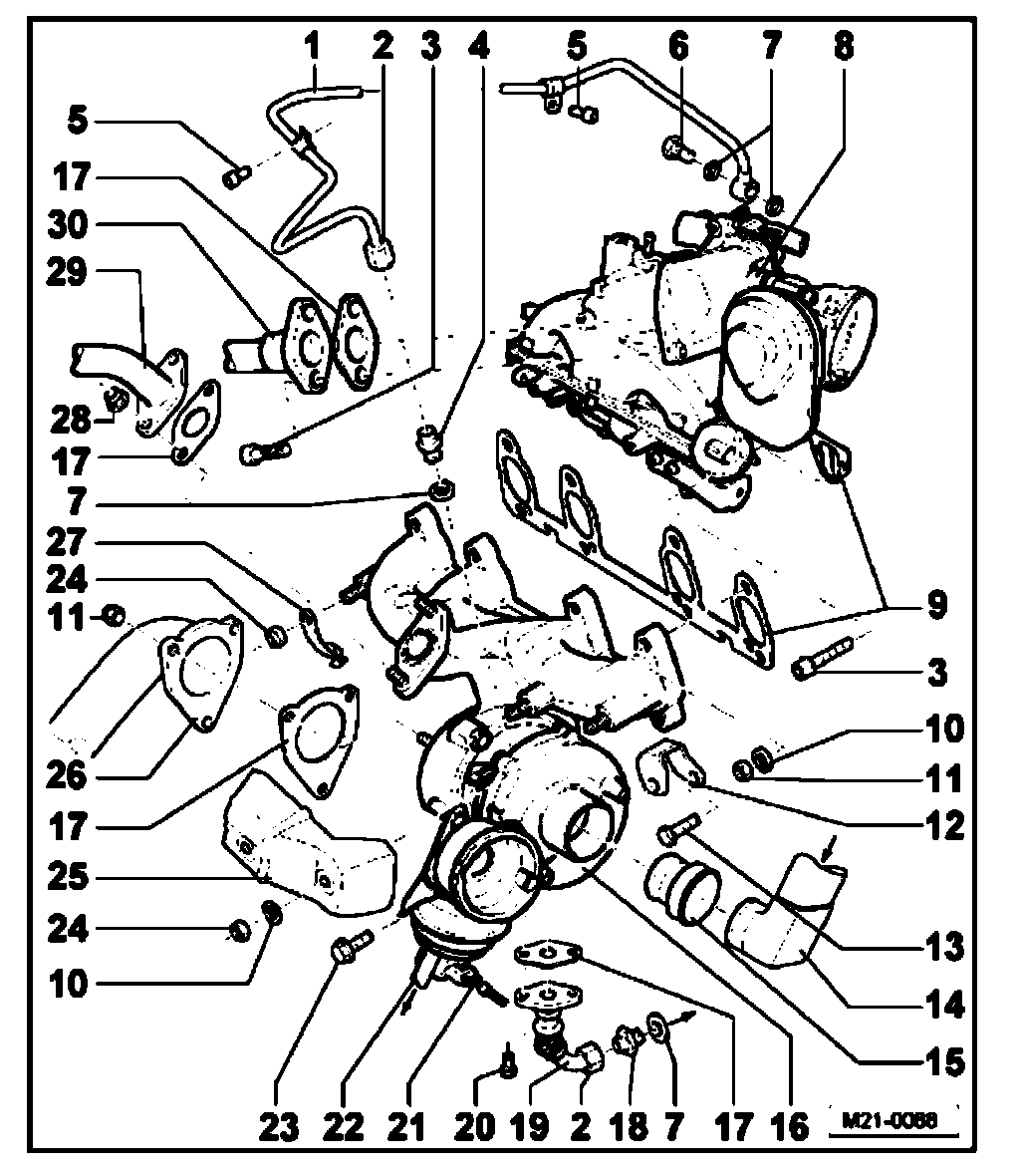 ^ Allow the engine run for approximately 1 minute at idling speed after having installed the turbocharger and do not do not rev up immediately. This ensures the lubrication of the turbocharger.