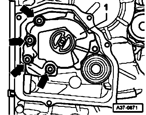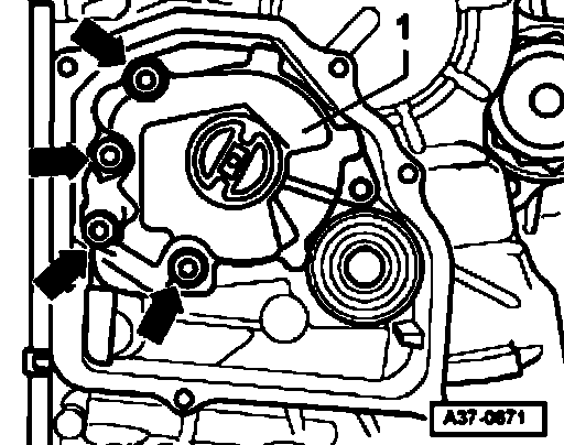 - Remove bolts (arrows) and take gear oil pump -1- out forward.