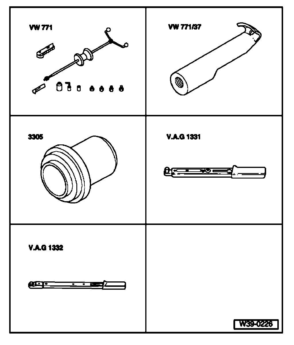 - Pull flanged shaft oil seal out using VW771 and VW771/37.