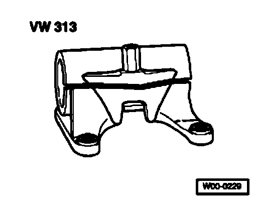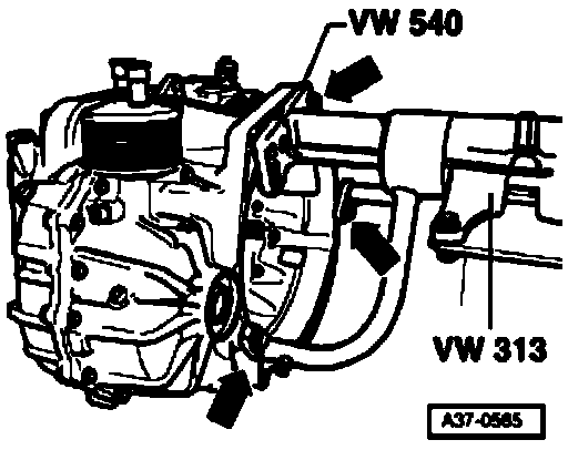 - Securing transmissions to engine and transmission support VW 540 (arrows) and installing in support clamp VW 313.