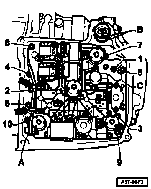 - Tighten bolts in sequence -1- to-10- to 5 Nm plus an additional 90° (90° corresponds to 1/4 turn).