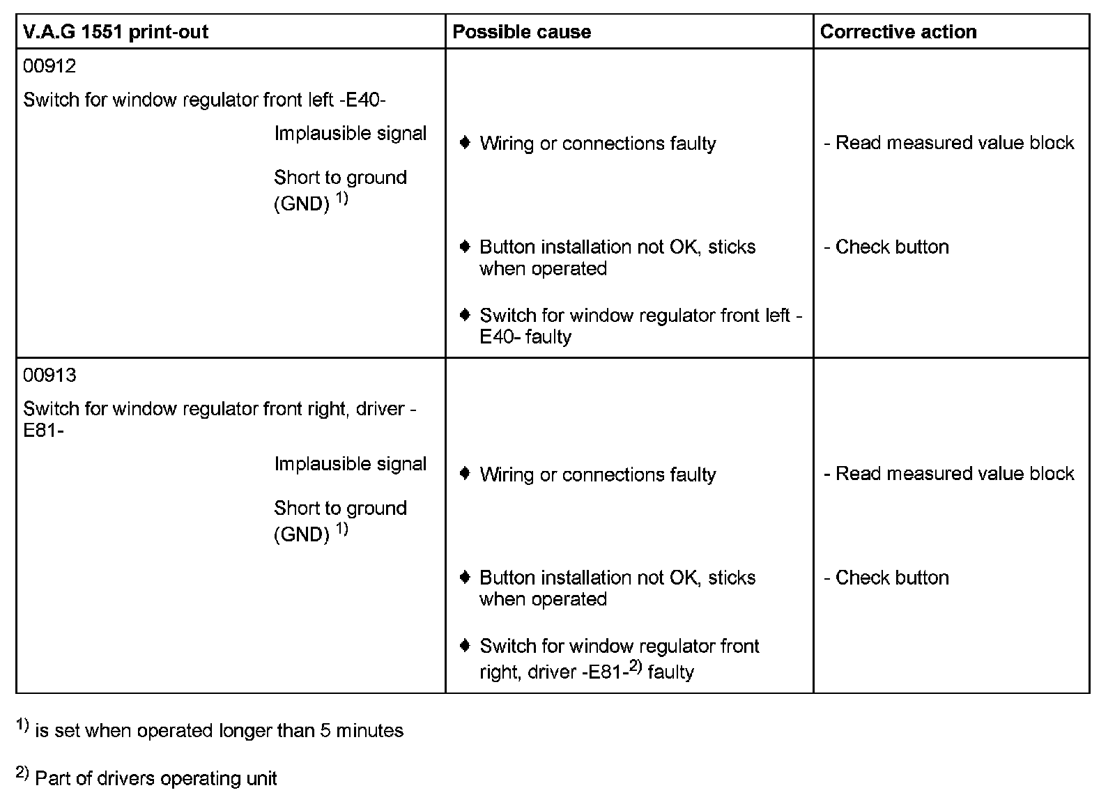 DTC 00912 - 00913:
