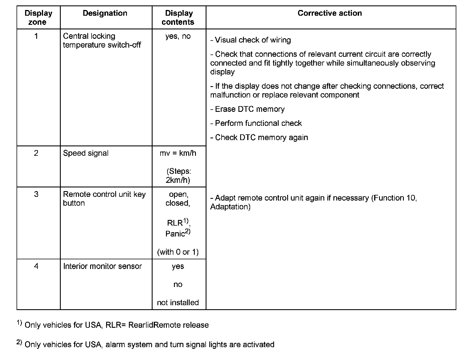 Display Zone 1 - 4: