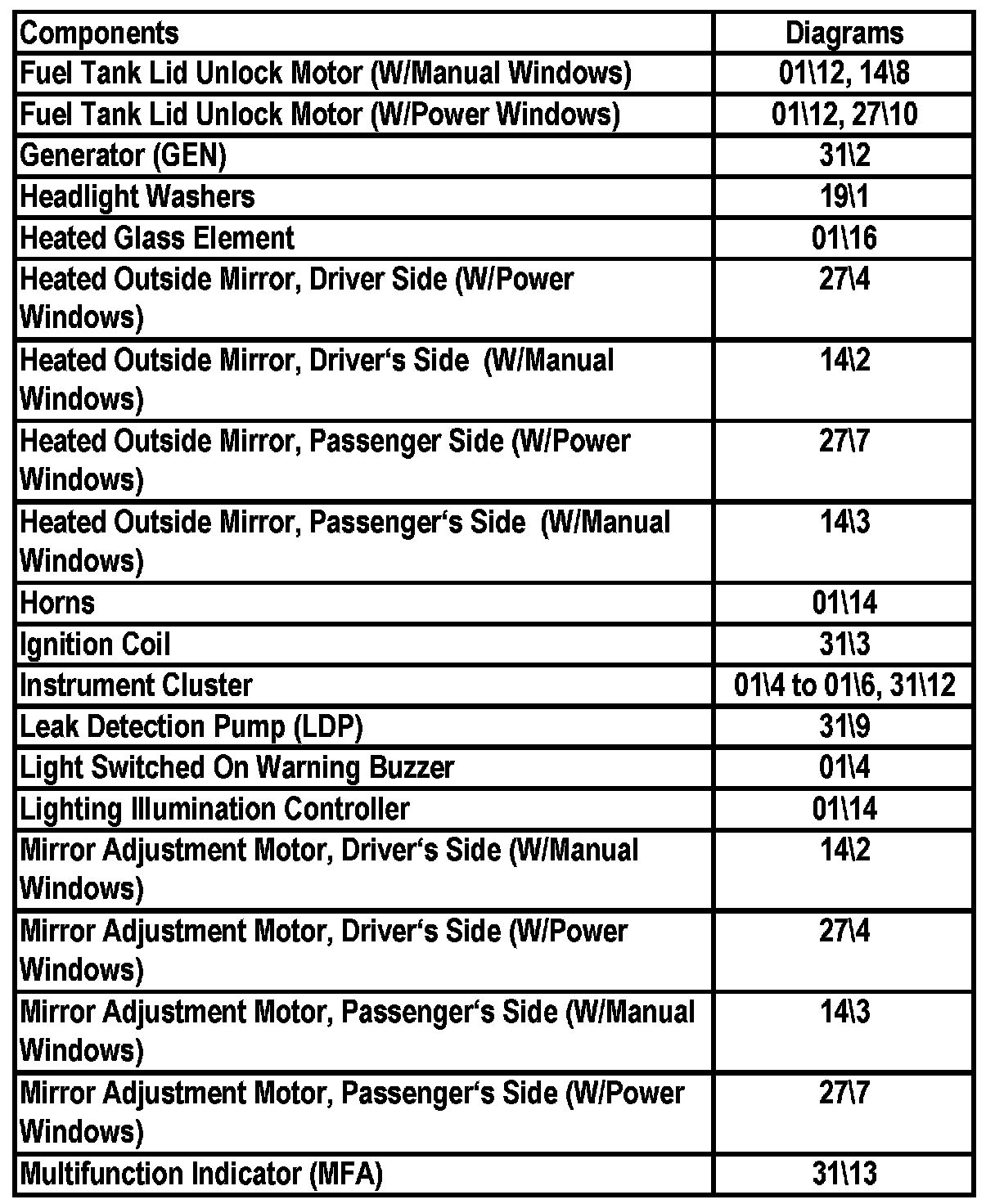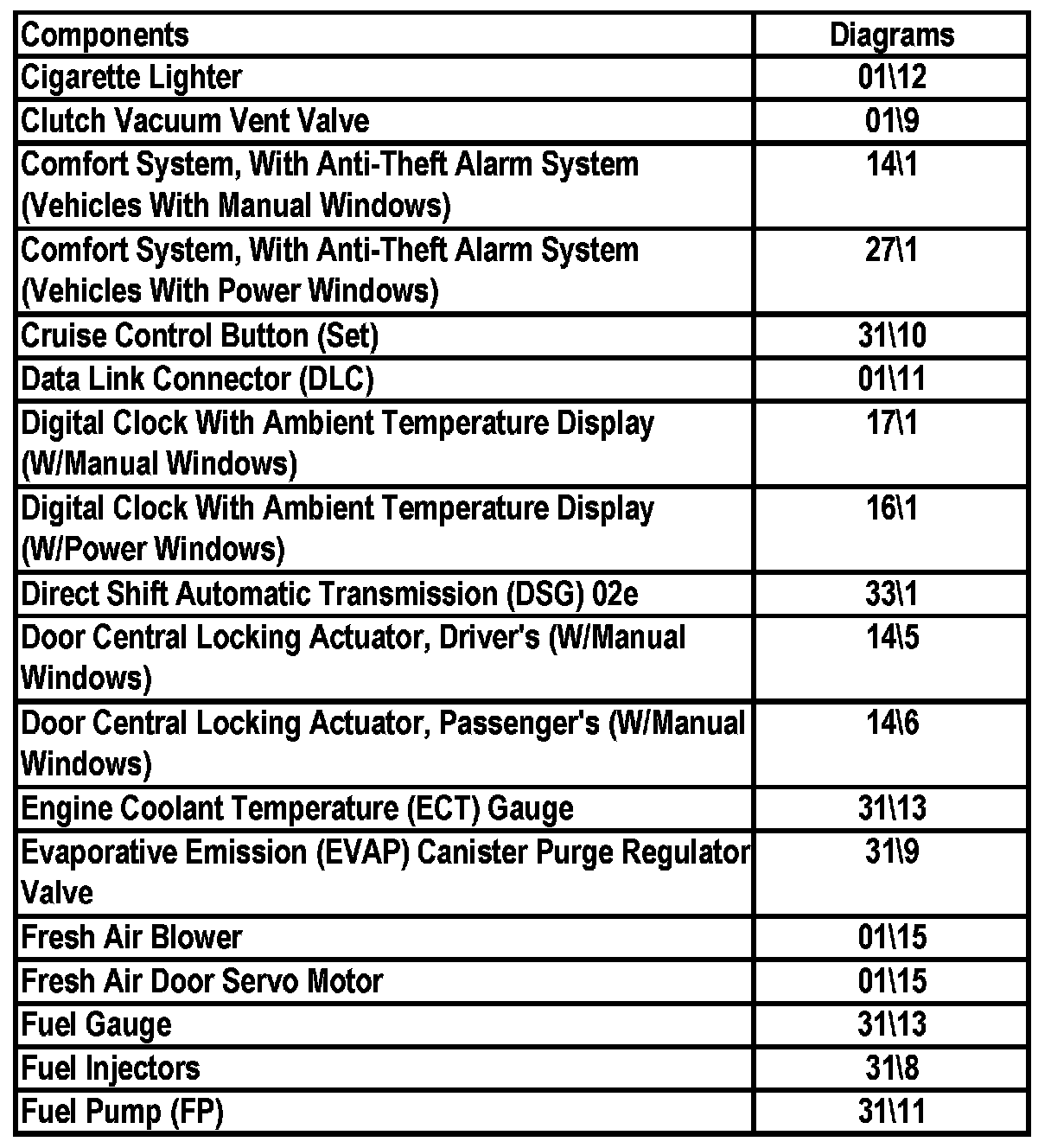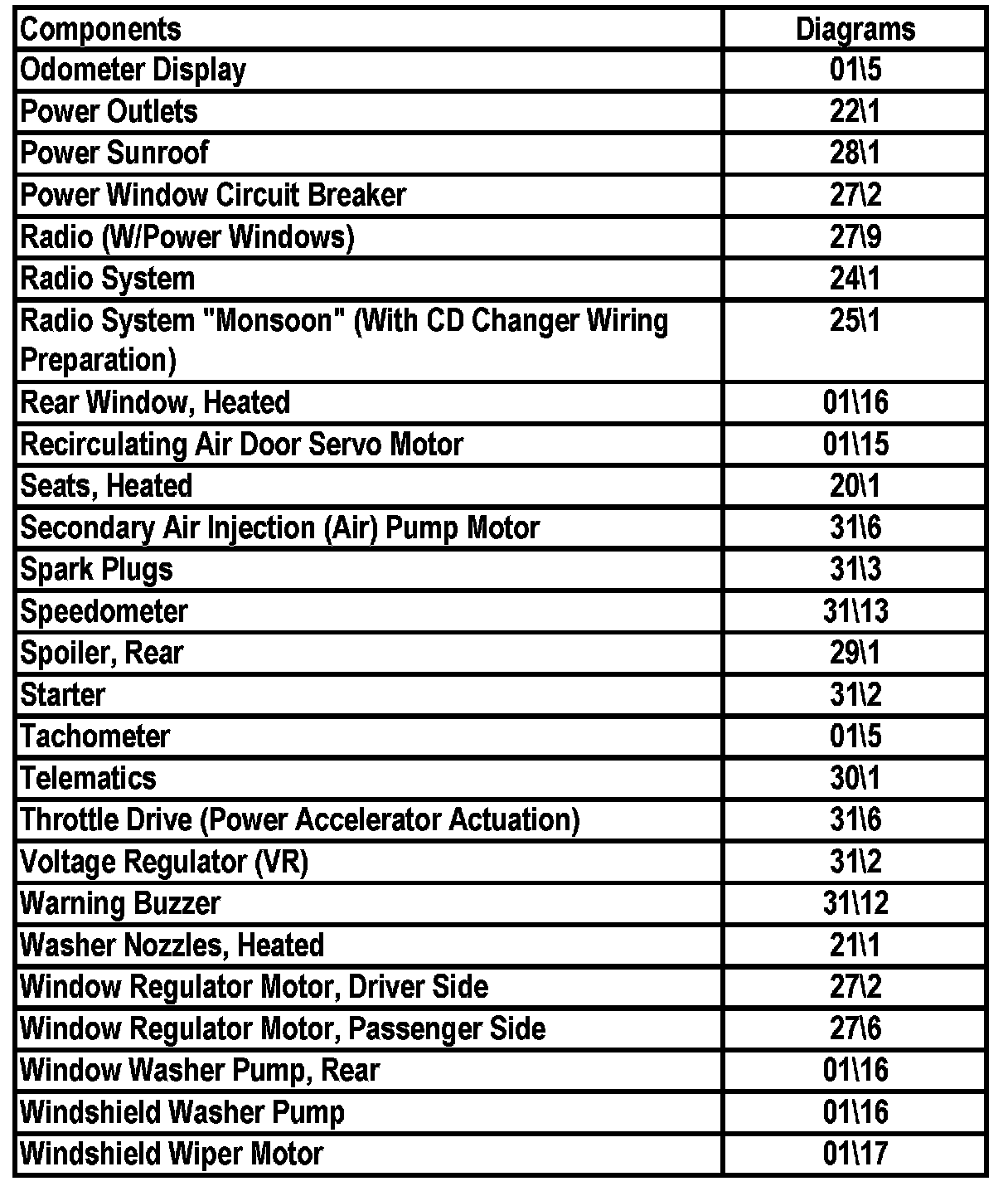Master Diagram Index