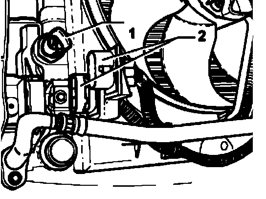 ^ Pull connectors off thermal switch -1- and coolant fan -2-.