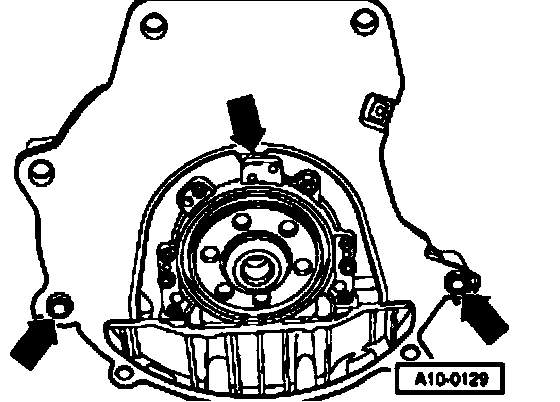 ^ Fit intermediate plate onto sealing flange and slide onto dowel sleeves (arrows).