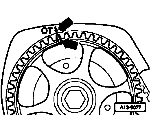 ^ Bring mark on camshaft into line with mark on toothed belt guard.