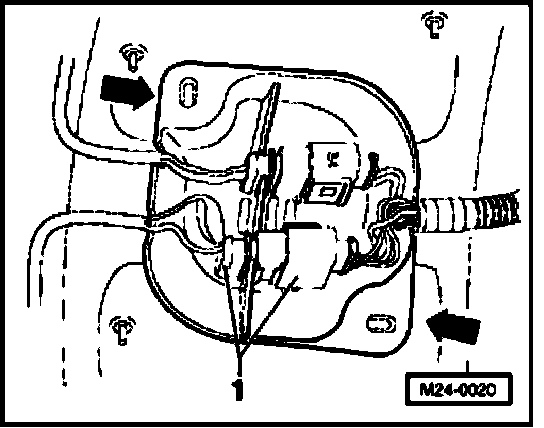 - Unscrew protective cover (arrows) and disconnect 6-pin harness connector (black) -1- to Heated Oxygen Sensor (HO2S) -G39- before catalytic converter.
