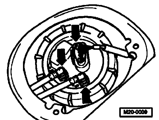 ^ After installing the fuel delivery unit, check that the supply, return and vent lines are still clipped onto the fuel tank.