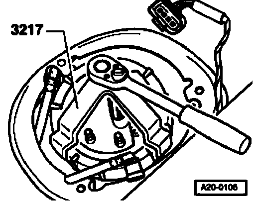 ^ Pull fuel delivery unit and seal out of opening in fuel tank.