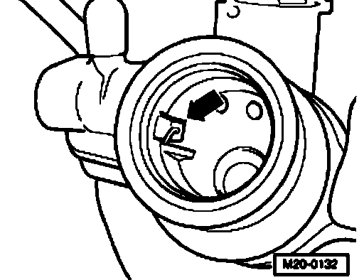 ^ Bend up tab on inside of fuel filler pipe as shown (arrow).