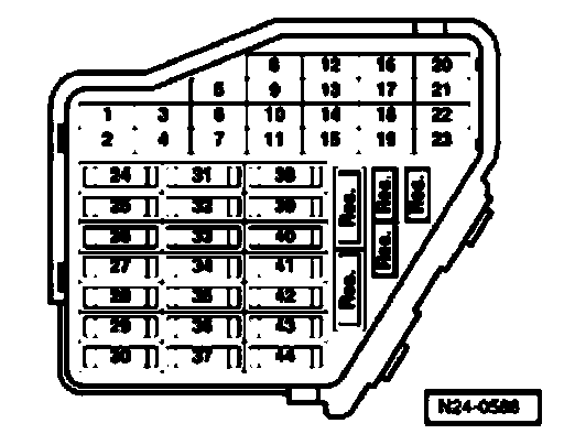 ^ For safety reasons, fuse No. 28 must be removed from fuse holder before opening fuel system because fuel pump can be activated by door contact switch in driver's door.