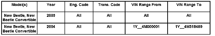 Socket contact verified beginning VIN: 3VWCD31Y44M318470.