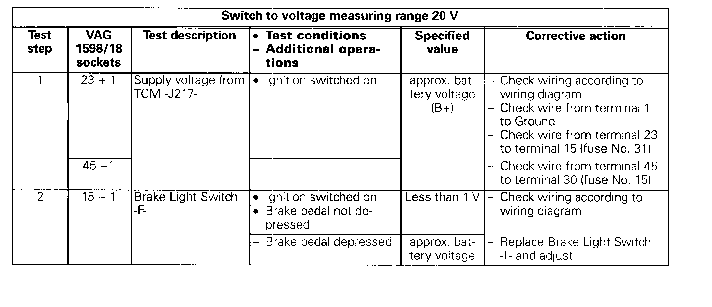 Control Module Pinout Values - 4 Speed Automatic 01M