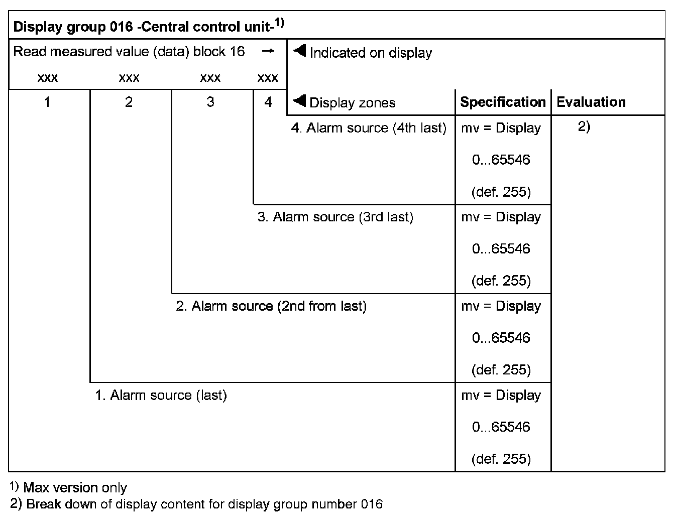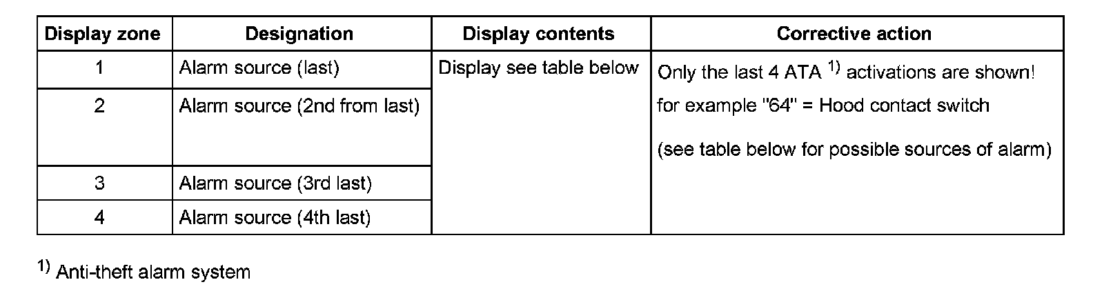 Possible sources of alarm Display