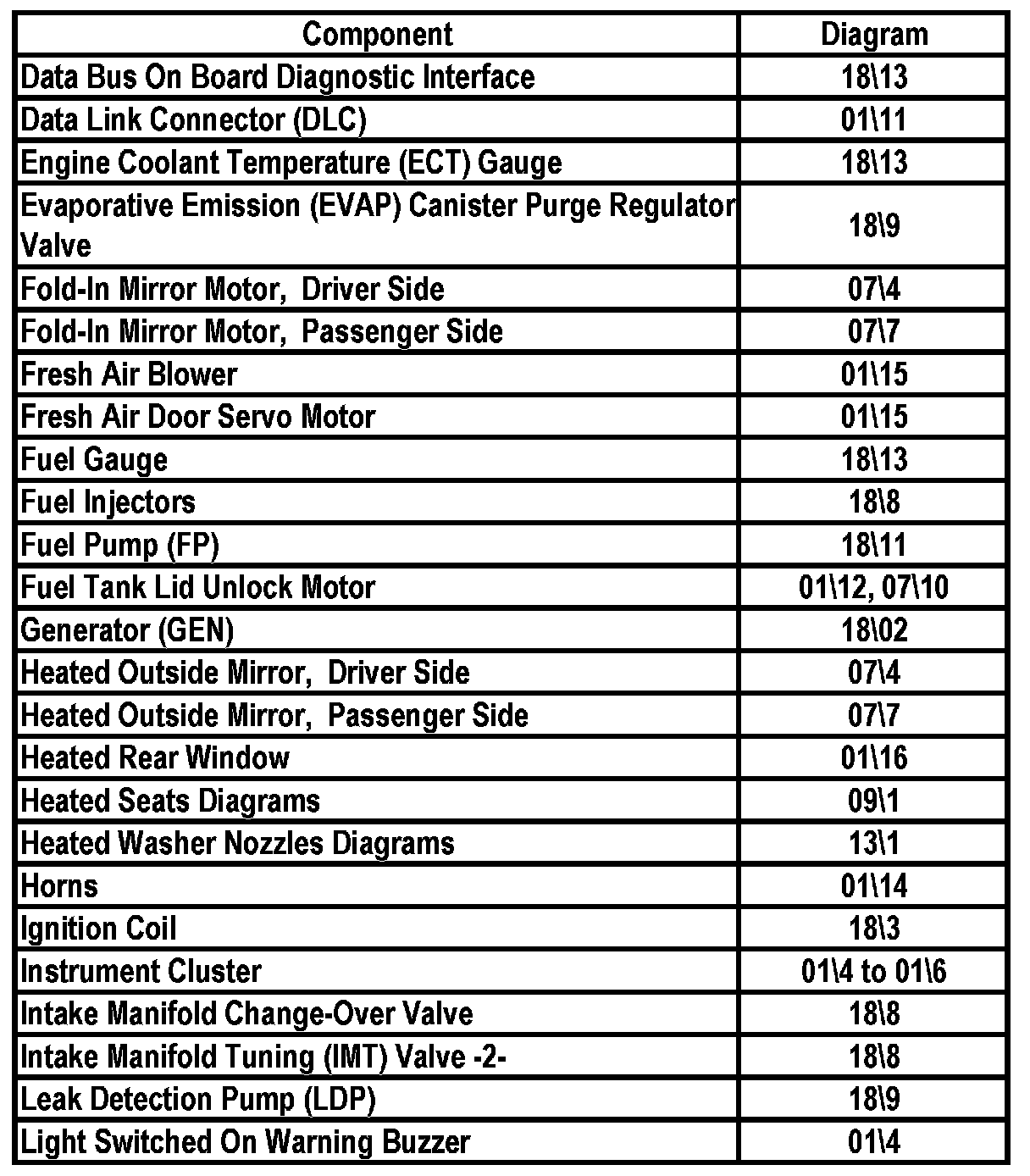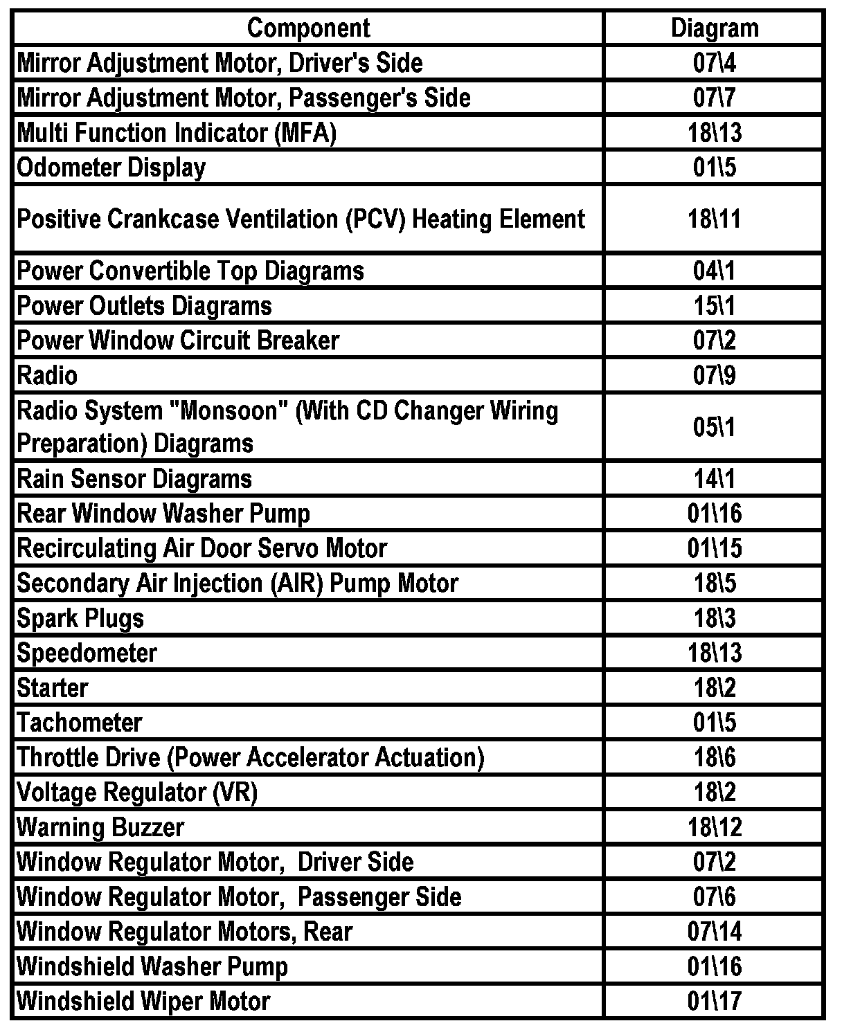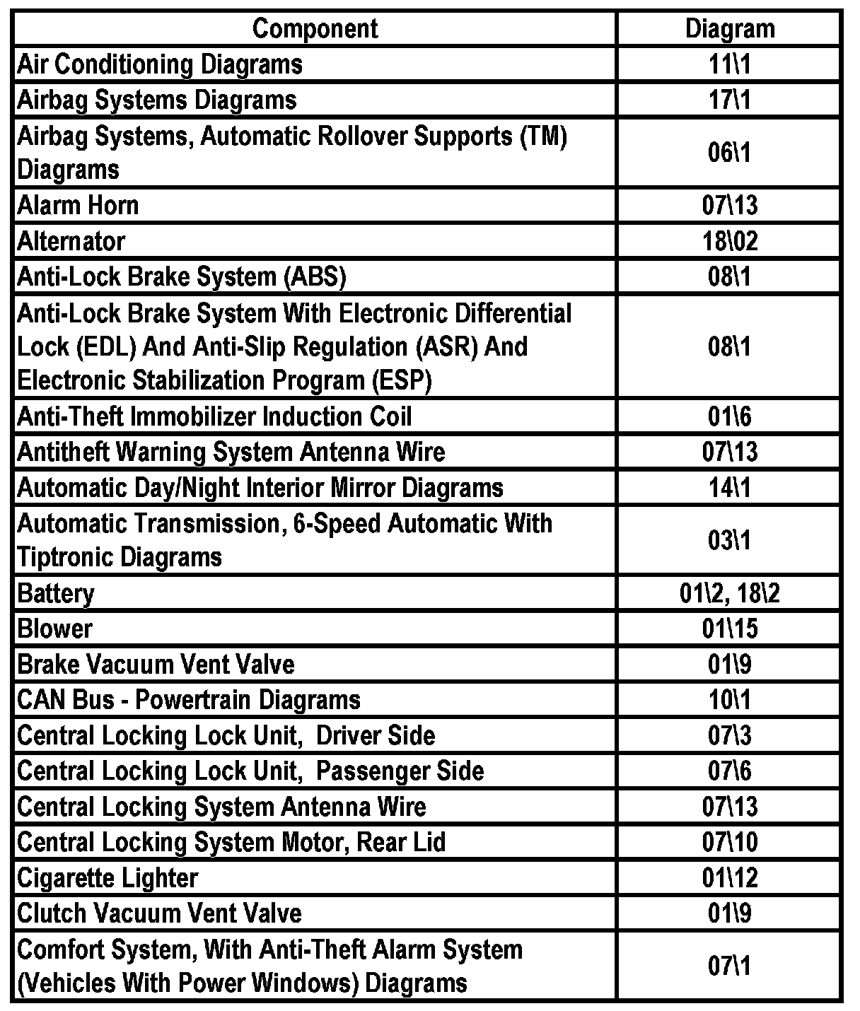 Master Diagram Index