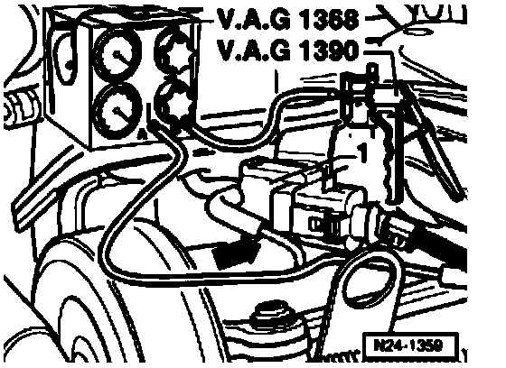 ^ Connect vacuum hose (to actuator) to vacuum tester VAG1368 (connection -A-).