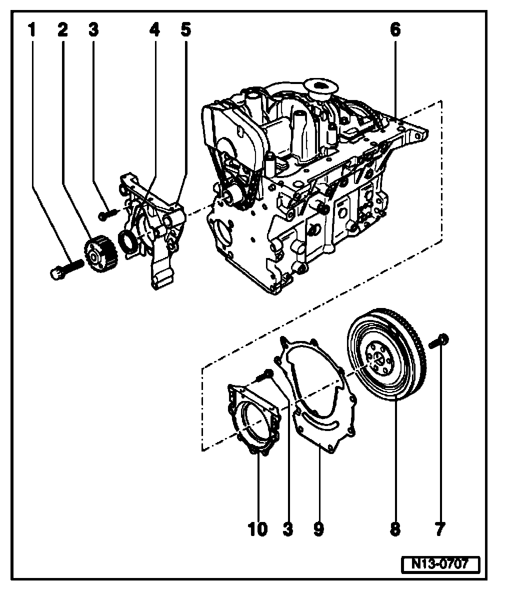 ^ For clarity reasons, individual sealing rings for sealing flange are also shown. Only replace sealing flange complete with oil seal.