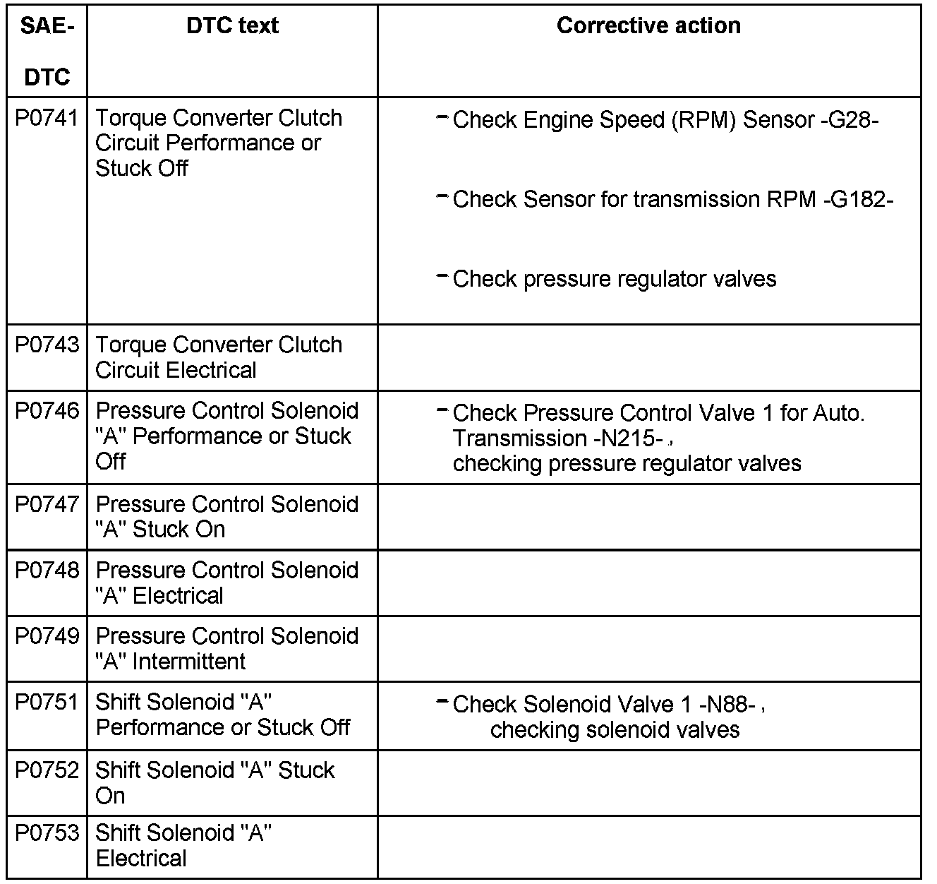 DTC P0741 - P0753: