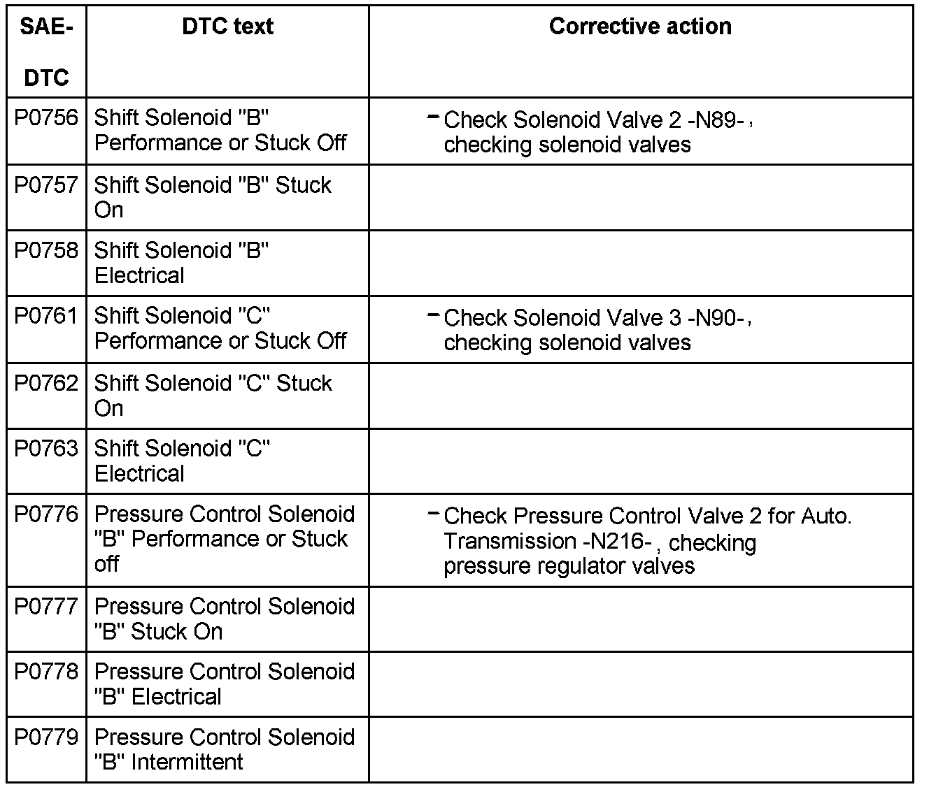 DTC P0756 - P0779:
