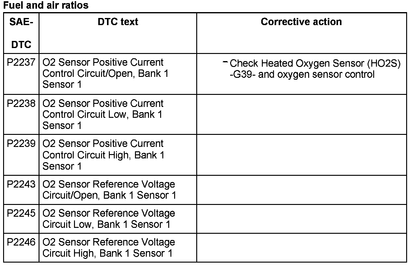 DTC P2237 - P2246: